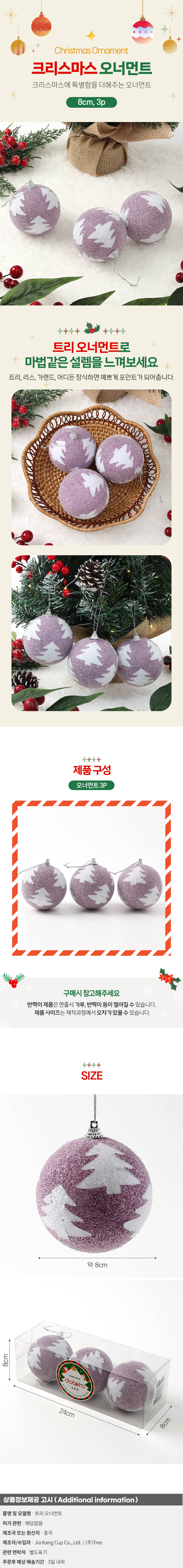 리빙휴 3p(8cm) 크리스마스트리 트리장식볼