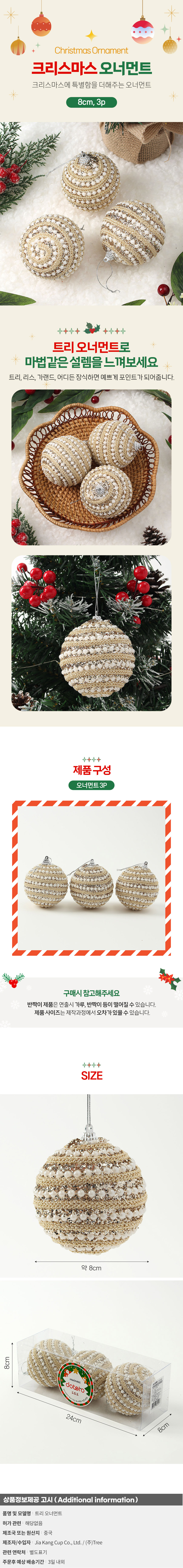 리빙휴 3p(8cm) 트리장식소품 크리스마스