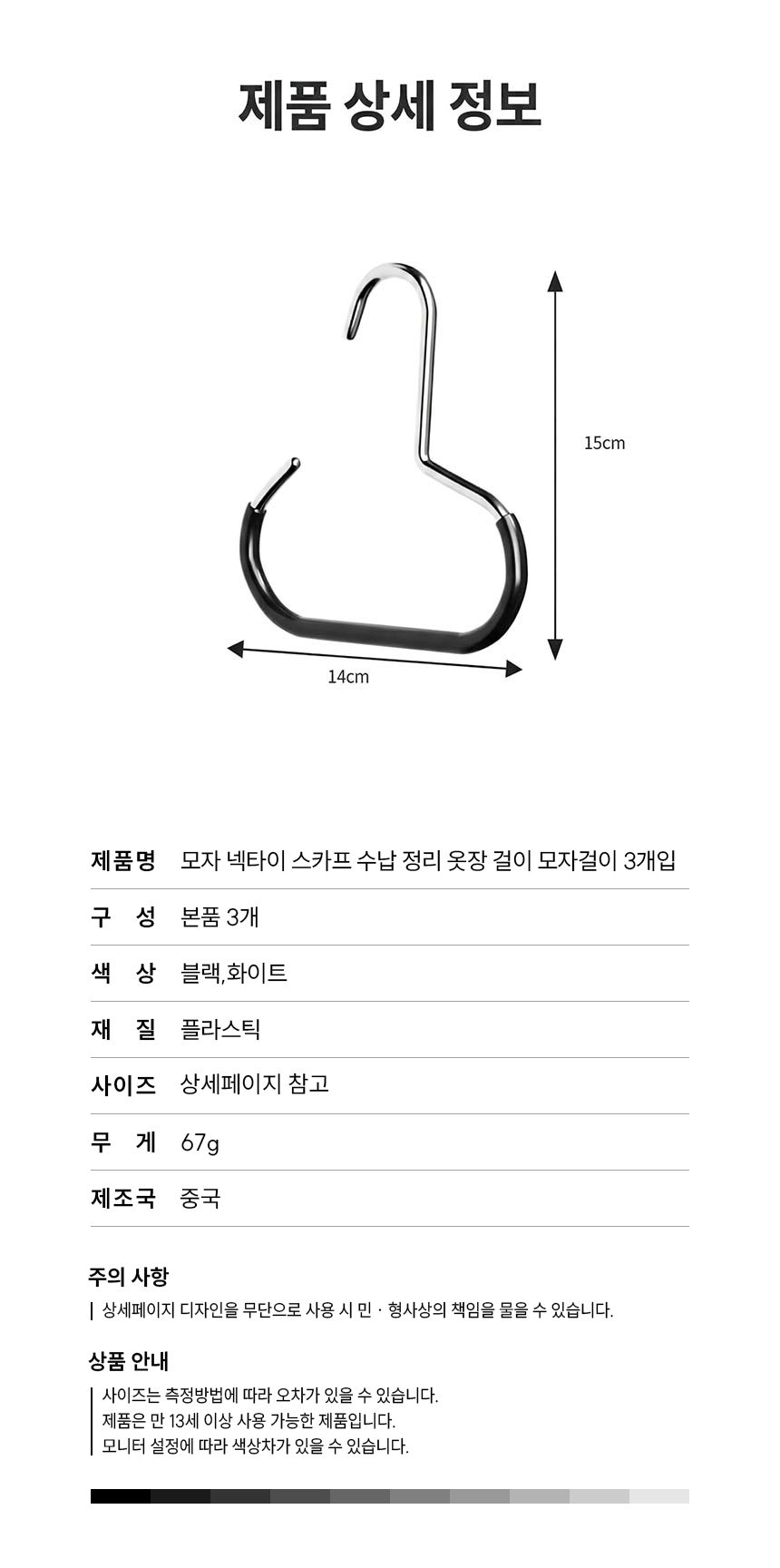 모자 넥타이 스카프 수납 정리 옷장 걸이 모자걸이 3개입