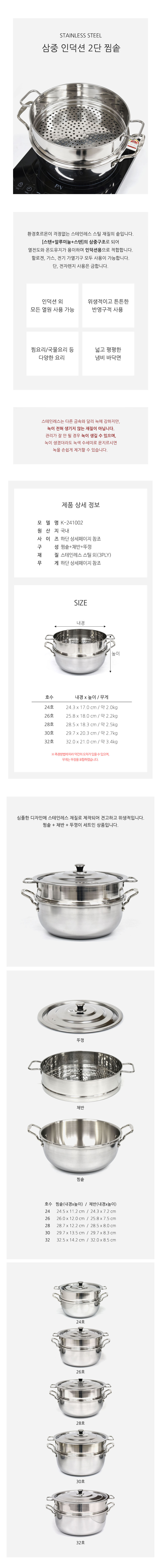 삼중 2단 찜솥 인덕션 찜기 탕 국물요리 28호