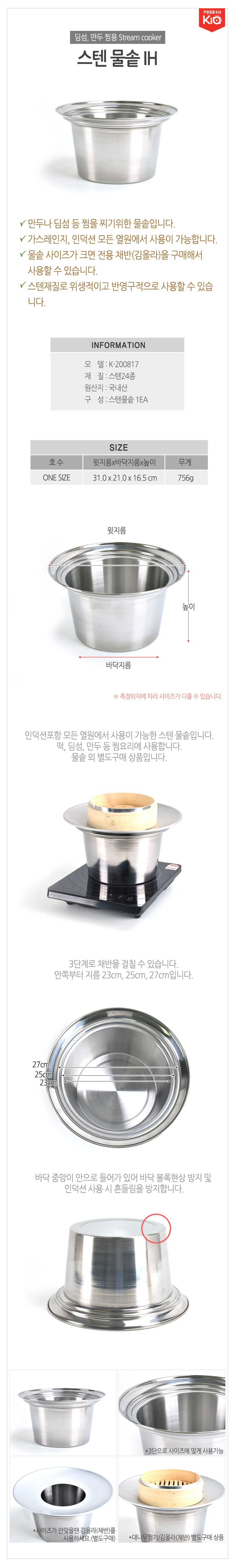 만두 딤섬 떡찌기용 스텐 찜냄비 찜기 스텐물솥 단품