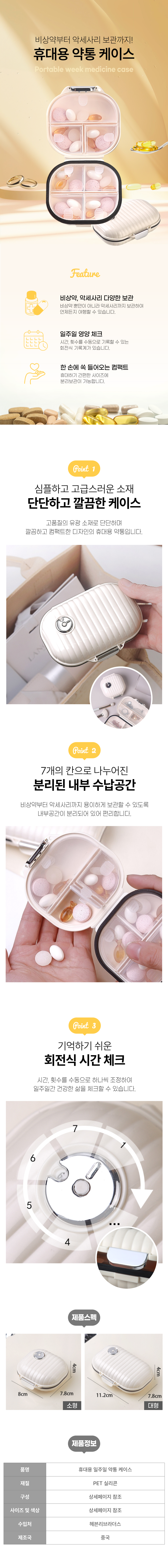 휴대용 일주일 약 소분통 케이스 요일별 보관함 알약통 휴대용 부모님 직장인