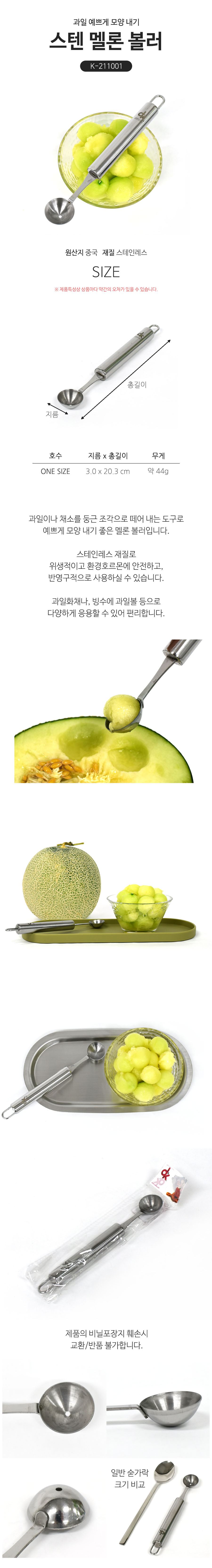 화채 빙수 모양내기용 과일 스쿱 스푼 델키스텐멜론볼러