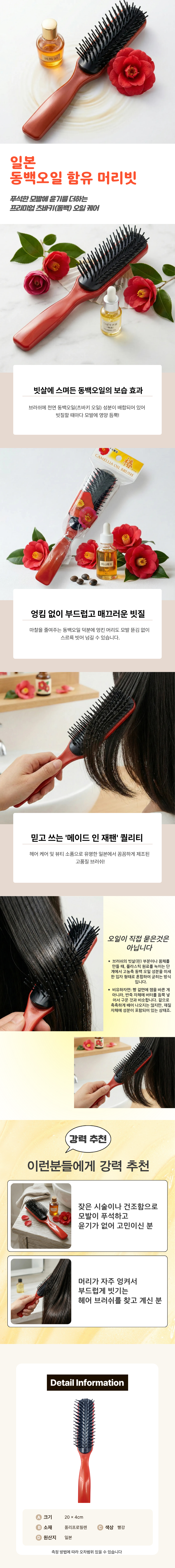 일본 정전기 없는 머리빗 동백오일 브러쉬 윤기 모발 케어