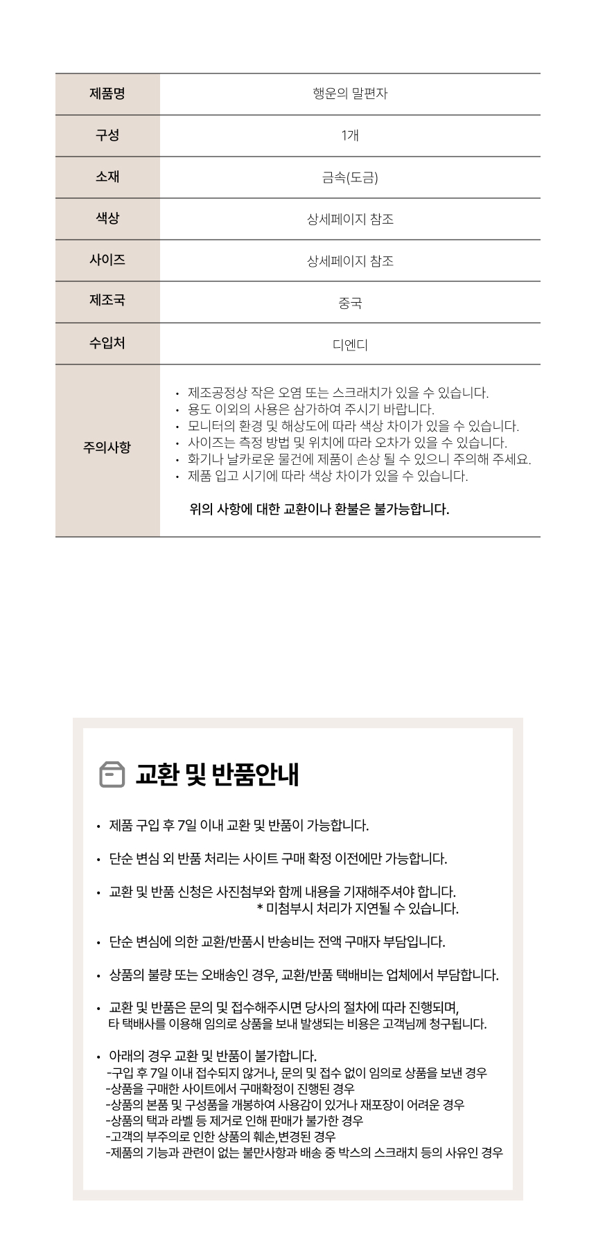 ※ 오배송, 불량, 파손 이외의 사유 및 색상 차이에 의한 반품/교환은 변심에 해당됩니다.