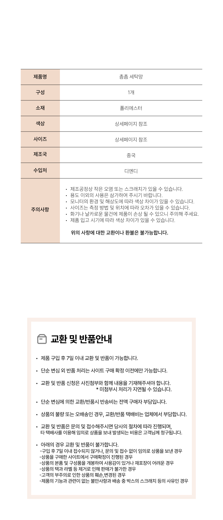 ※ 오배송, 불량, 파손 이외의 사유 및 색상 차이에 의한 반품/교환은 변심에 해당됩니다.