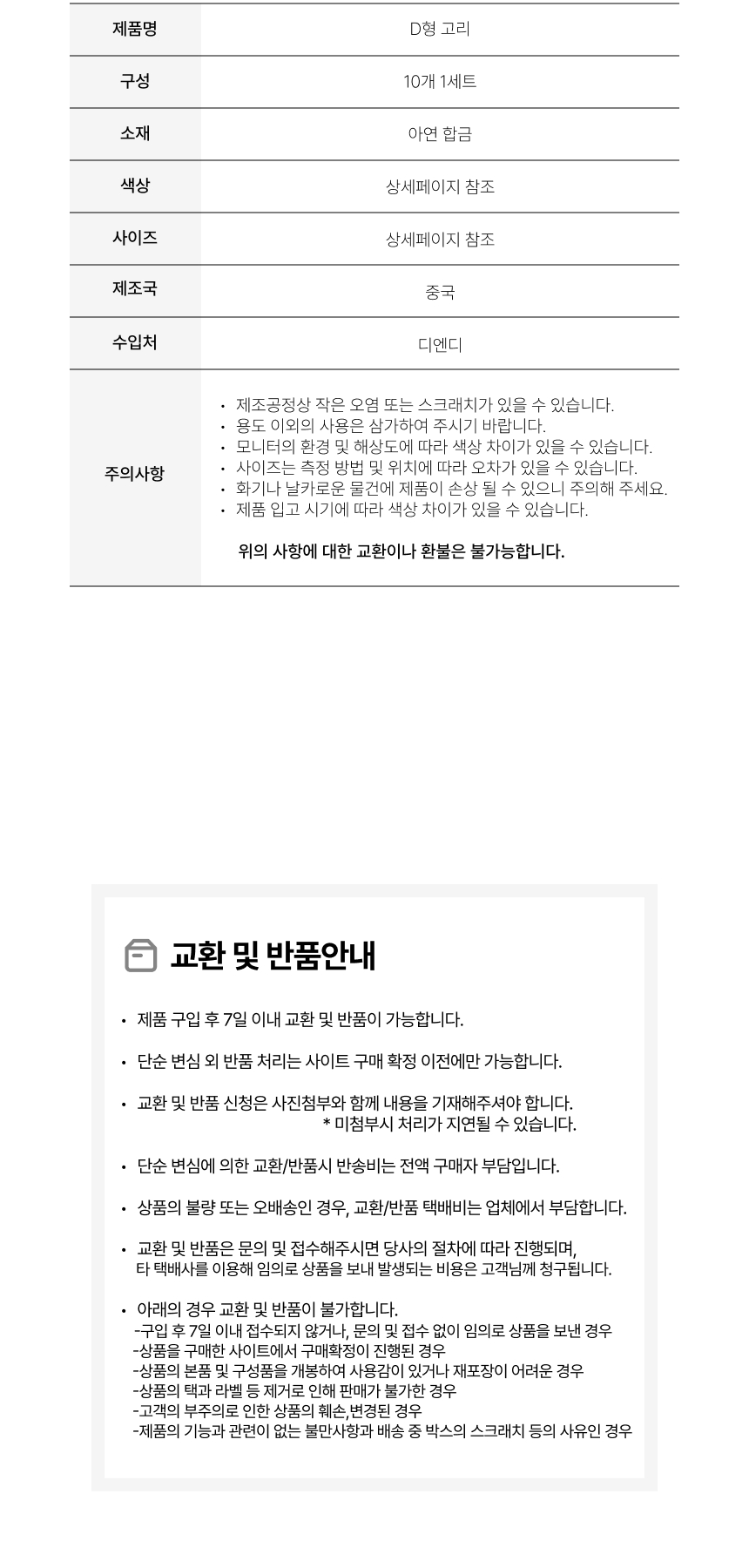 ※ 오배송, 불량, 파손 이외의 사유 및 색상 차이에 의한 반품/교환은 변심에 해당됩니다.