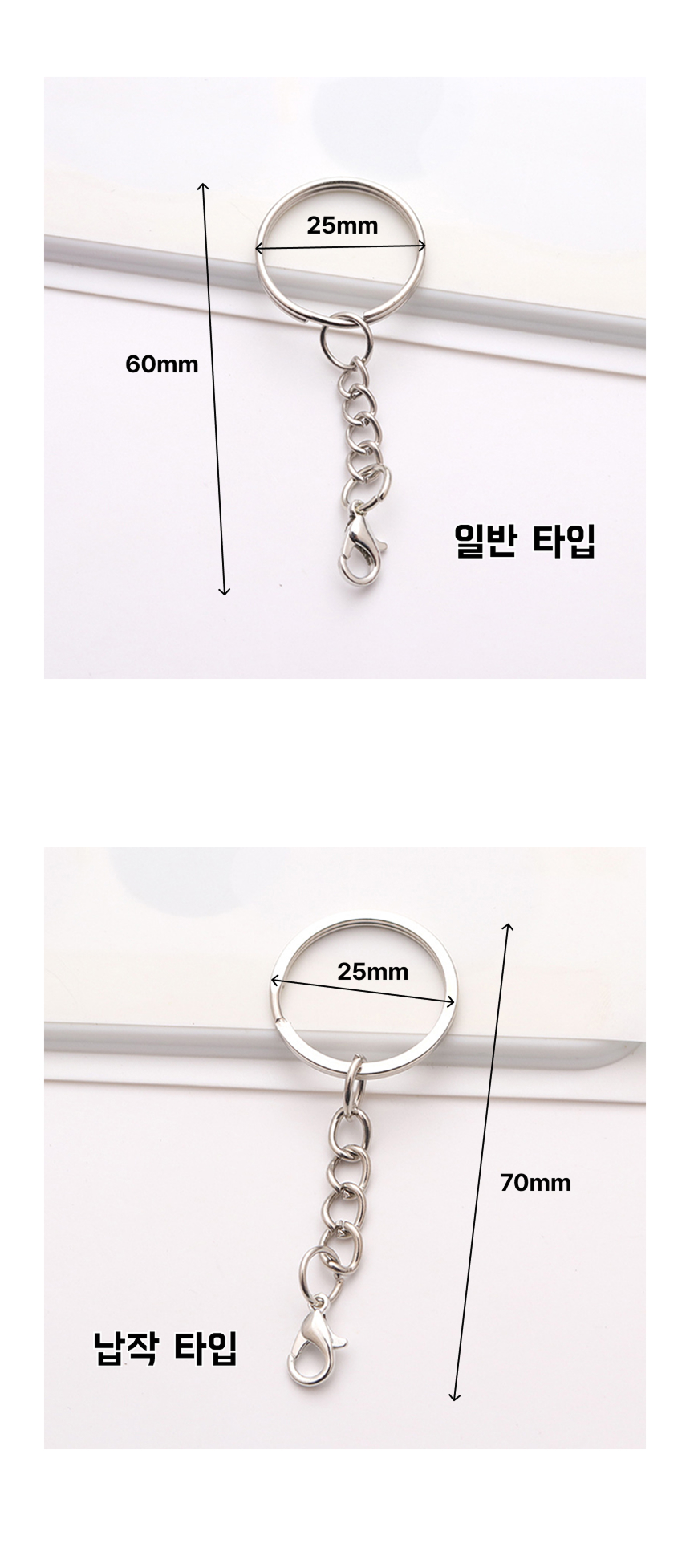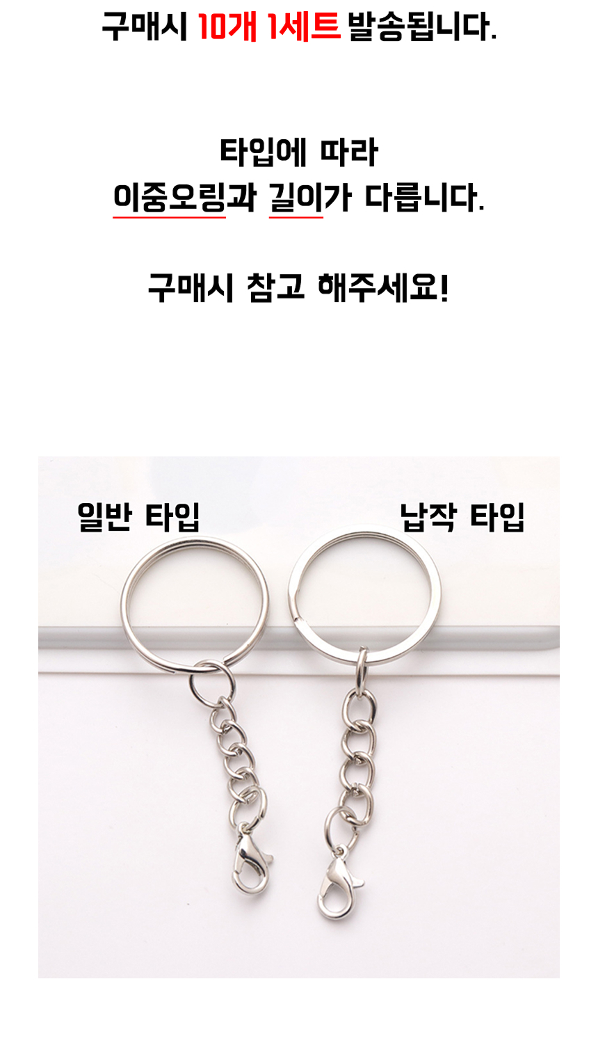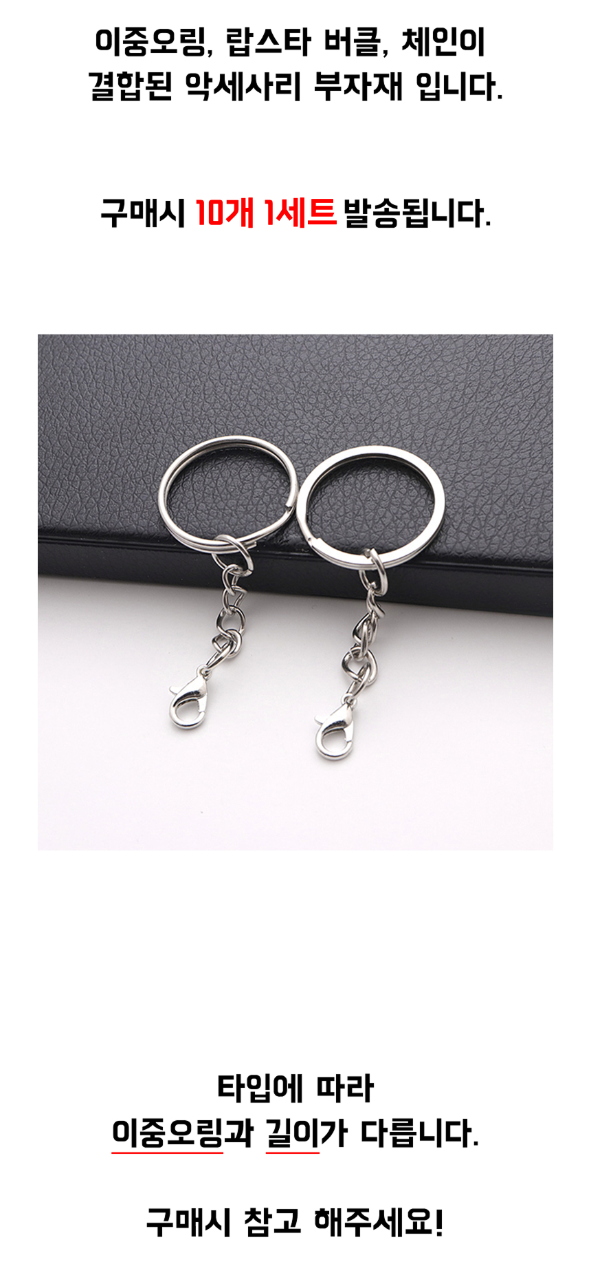 악세사리 키링 만들기 부자재 열쇠고리 링 체인 연결 랍스터 고리 일반 납작 25mm 10개
