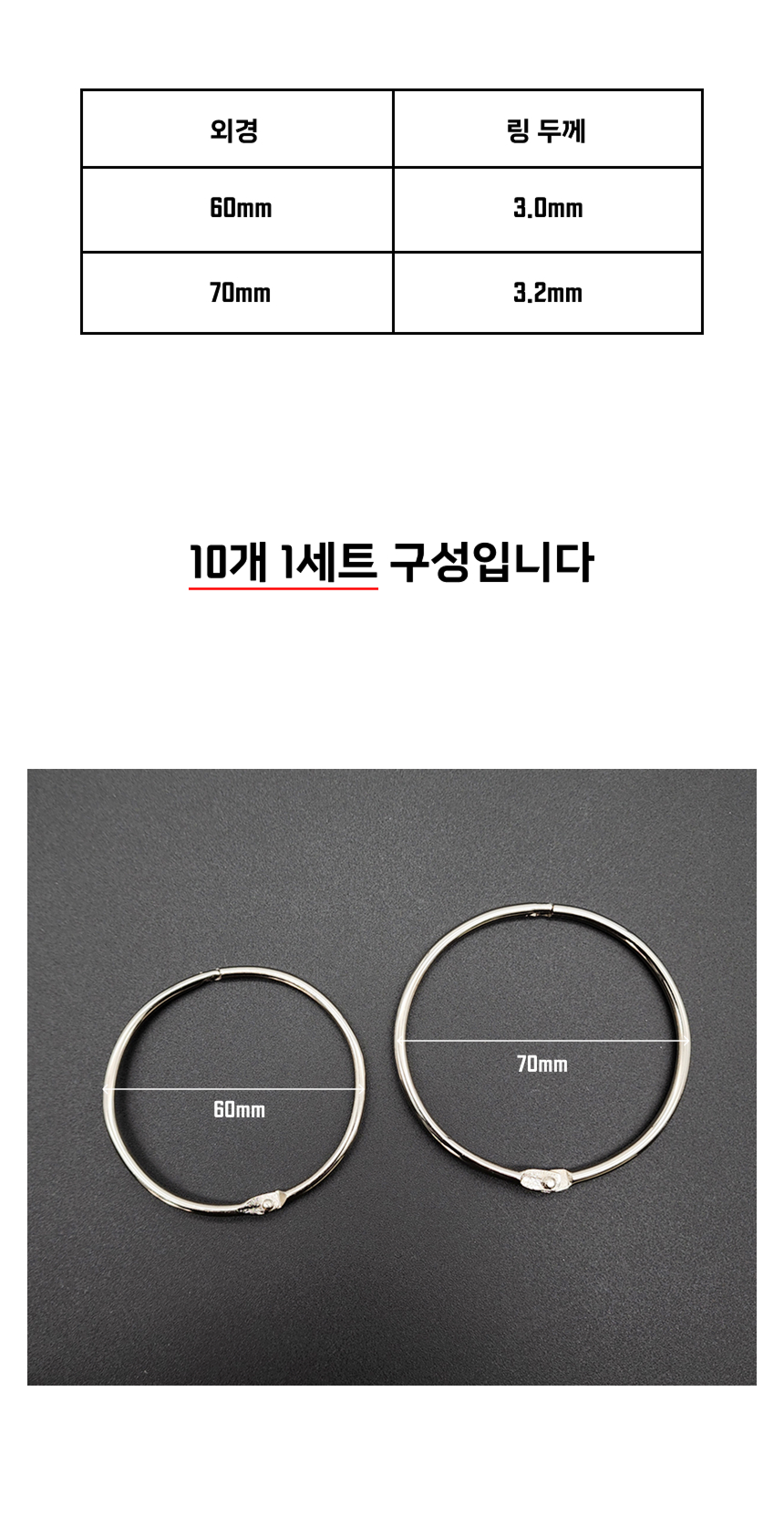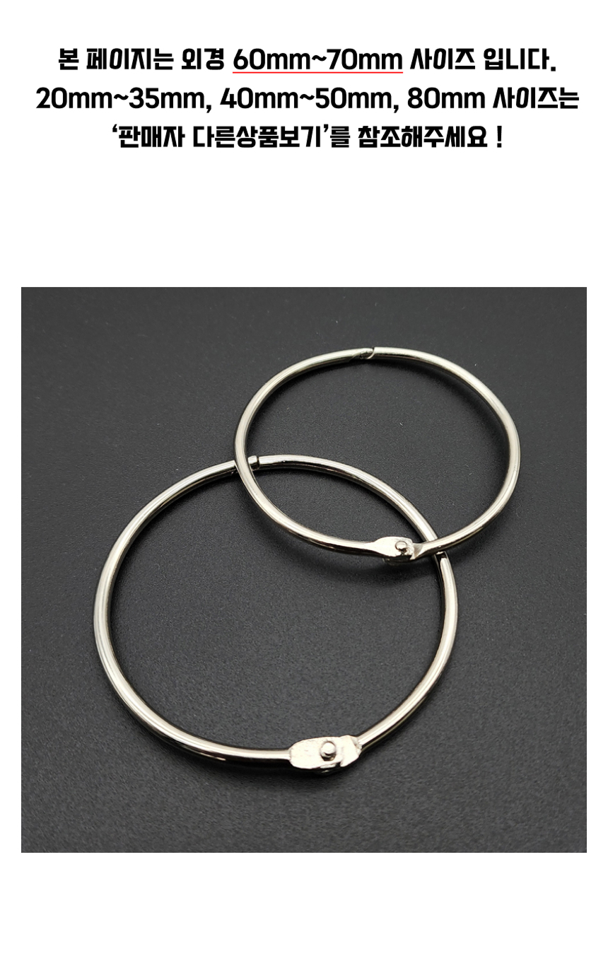책철 단어 카드 링 고리 링바인더 대형 60mm 70mm 10P