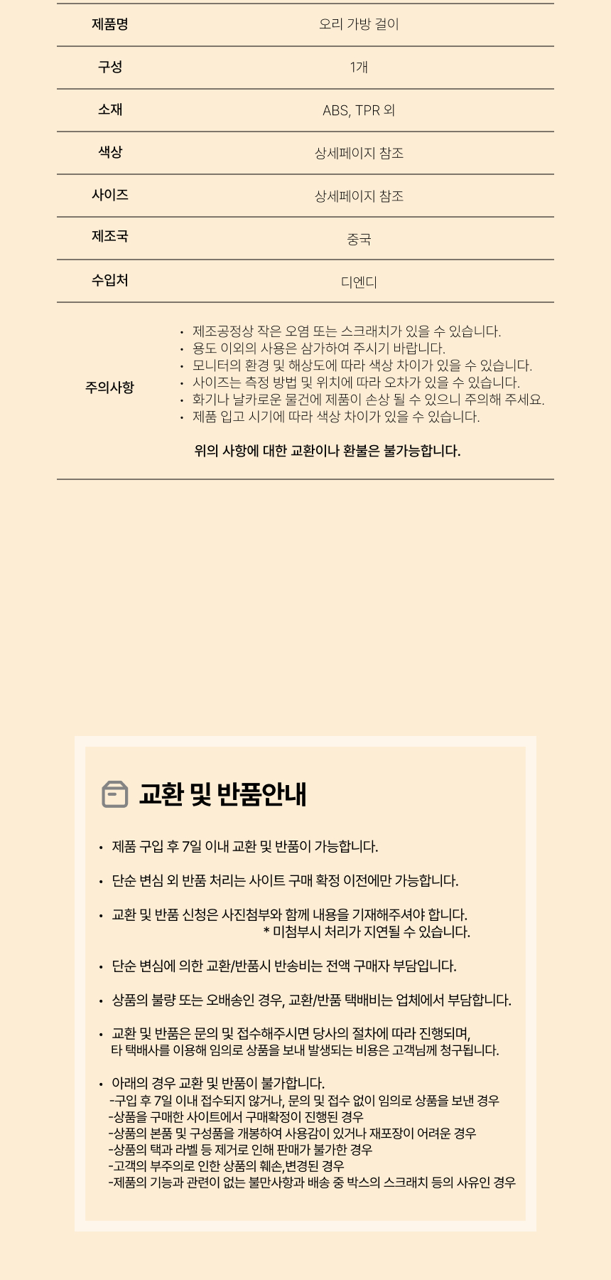 | 상품의 교환/반품/보증 조건 및 품질보증 기준 | |||