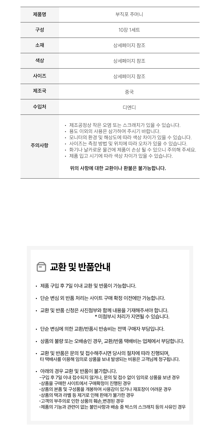※ 오배송, 불량, 파손 이외의 사유 및 색상 차이에 의한 반품/교환은 변심에 해당됩니다.