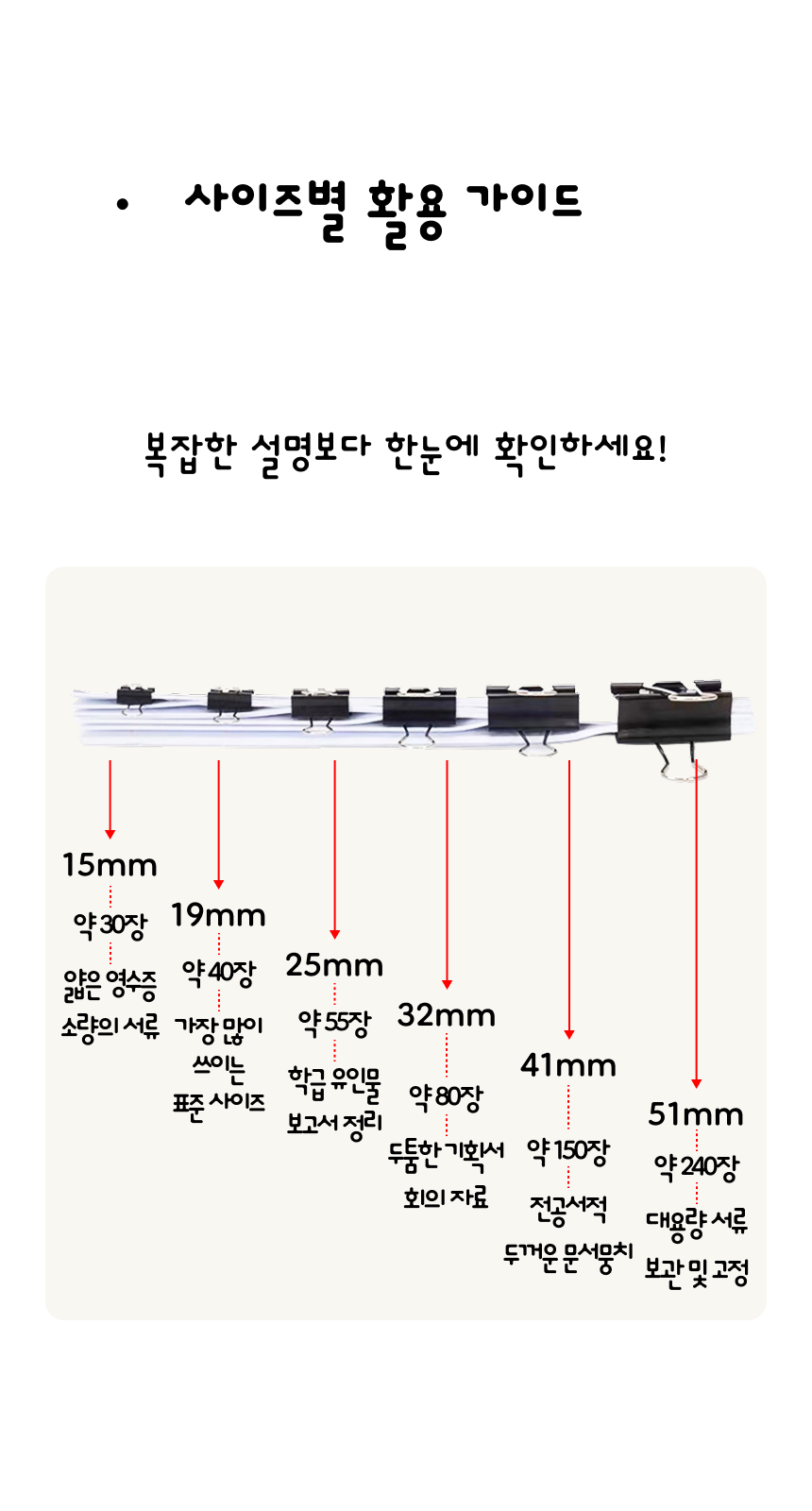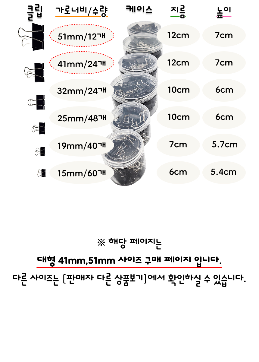 사무용 서류 집게 문서 정리 집게 더블클립 대형 41mm/51mm