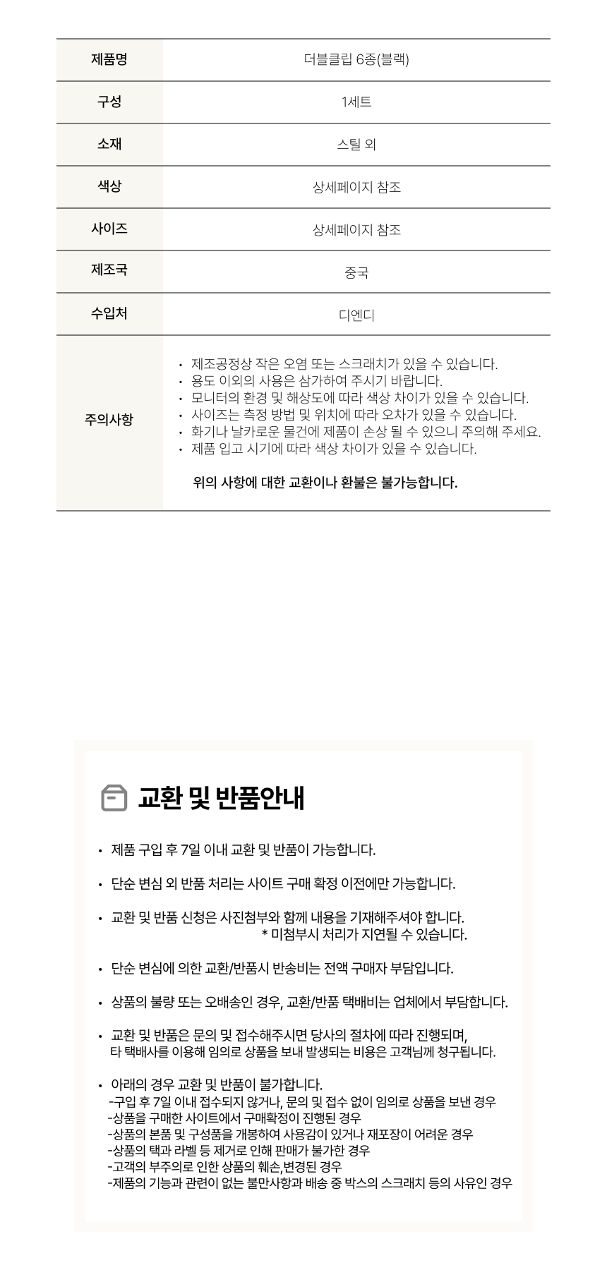 ※ 오배송, 불량, 파손 이외의 사유 및 색상 차이에 의한 반품/교환은 변심에 해당됩니다.