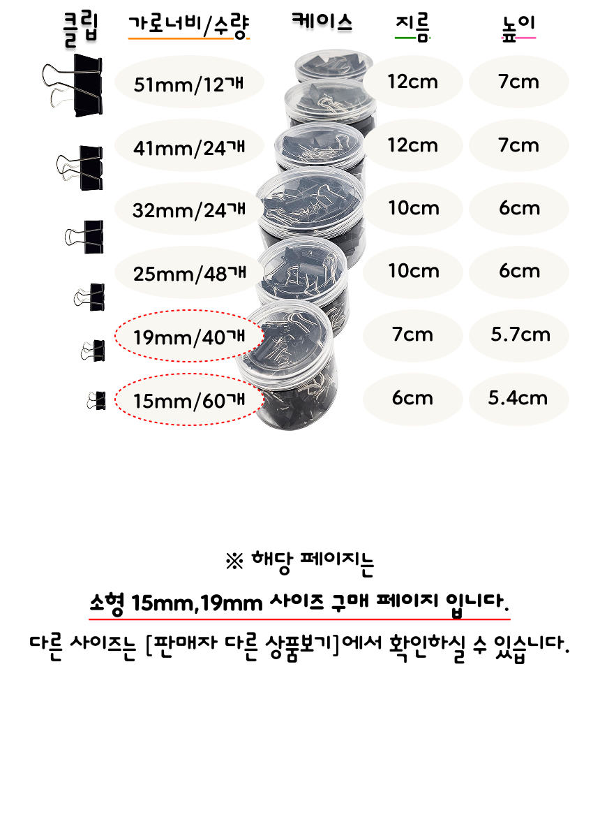 서류 문서 정리 종이 집게 사무용 더블클립 소형 15mm/19mm