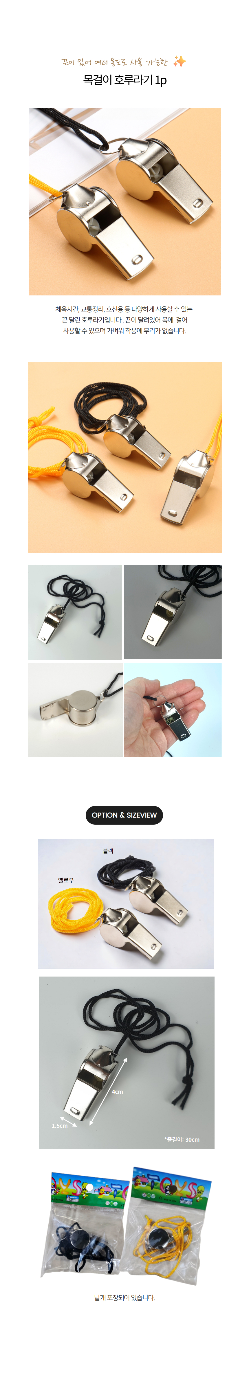 목걸이 호루라기 끈있는 쇠 호각 휘슬 1p