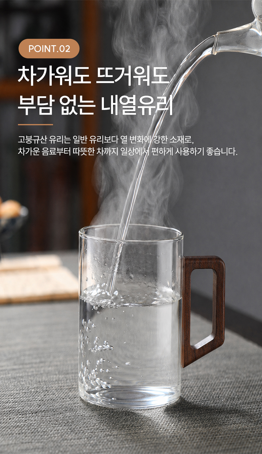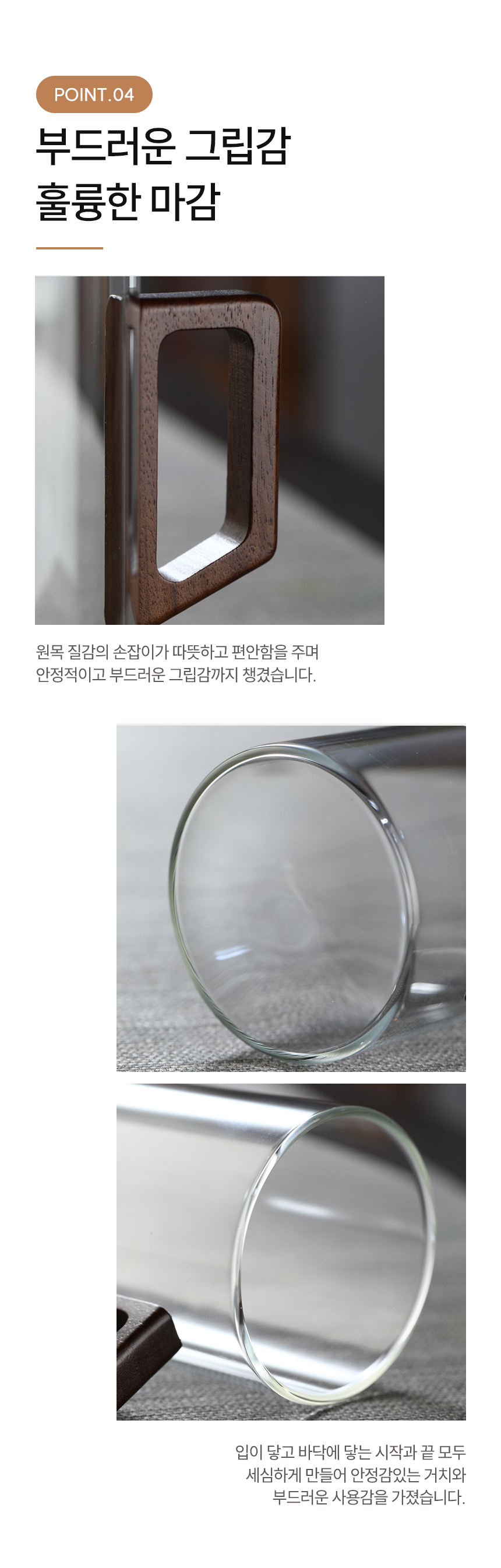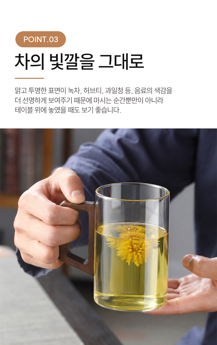 우드 핸들 예쁜 심플 내열 유리컵 머그컵 2p 500ml