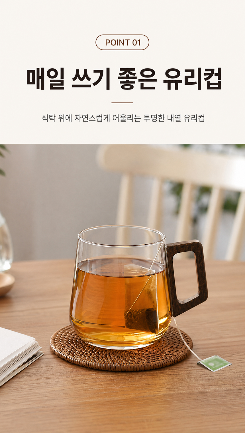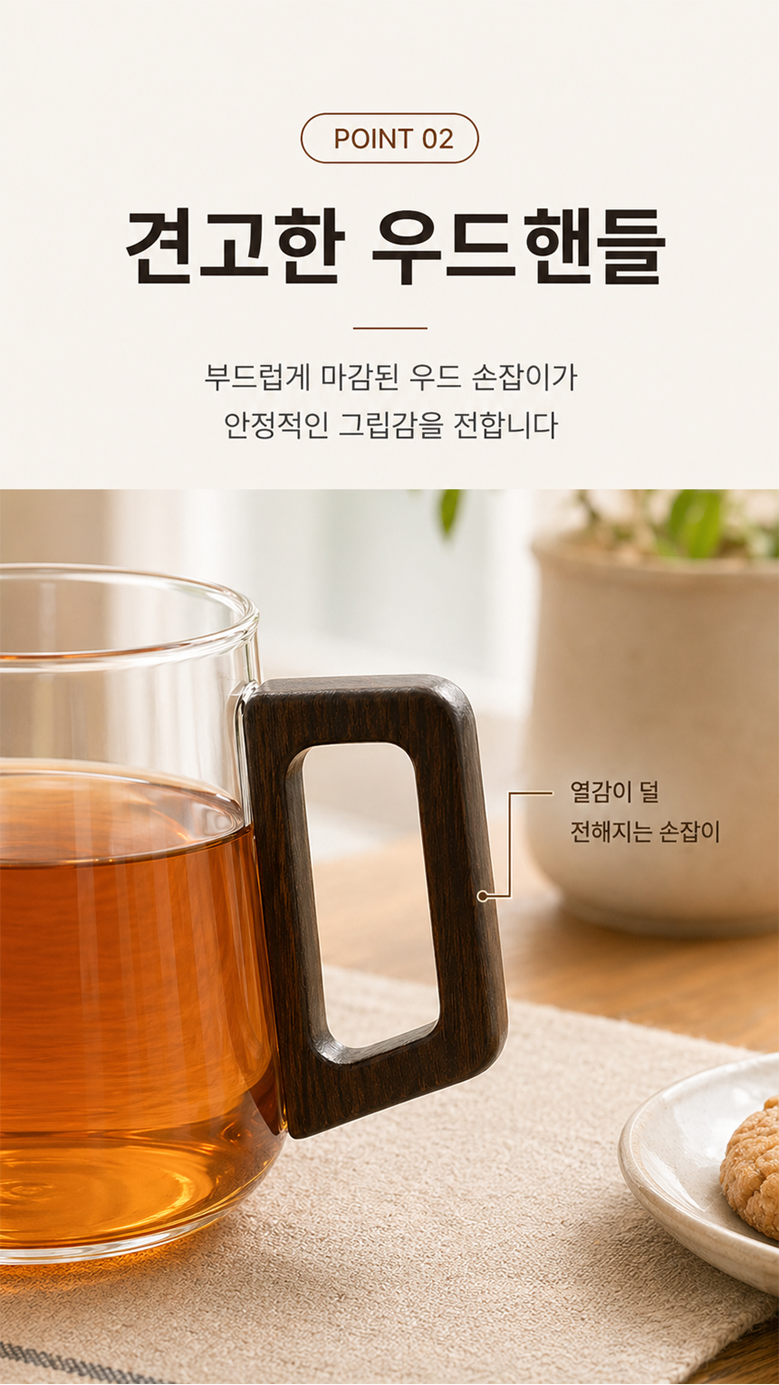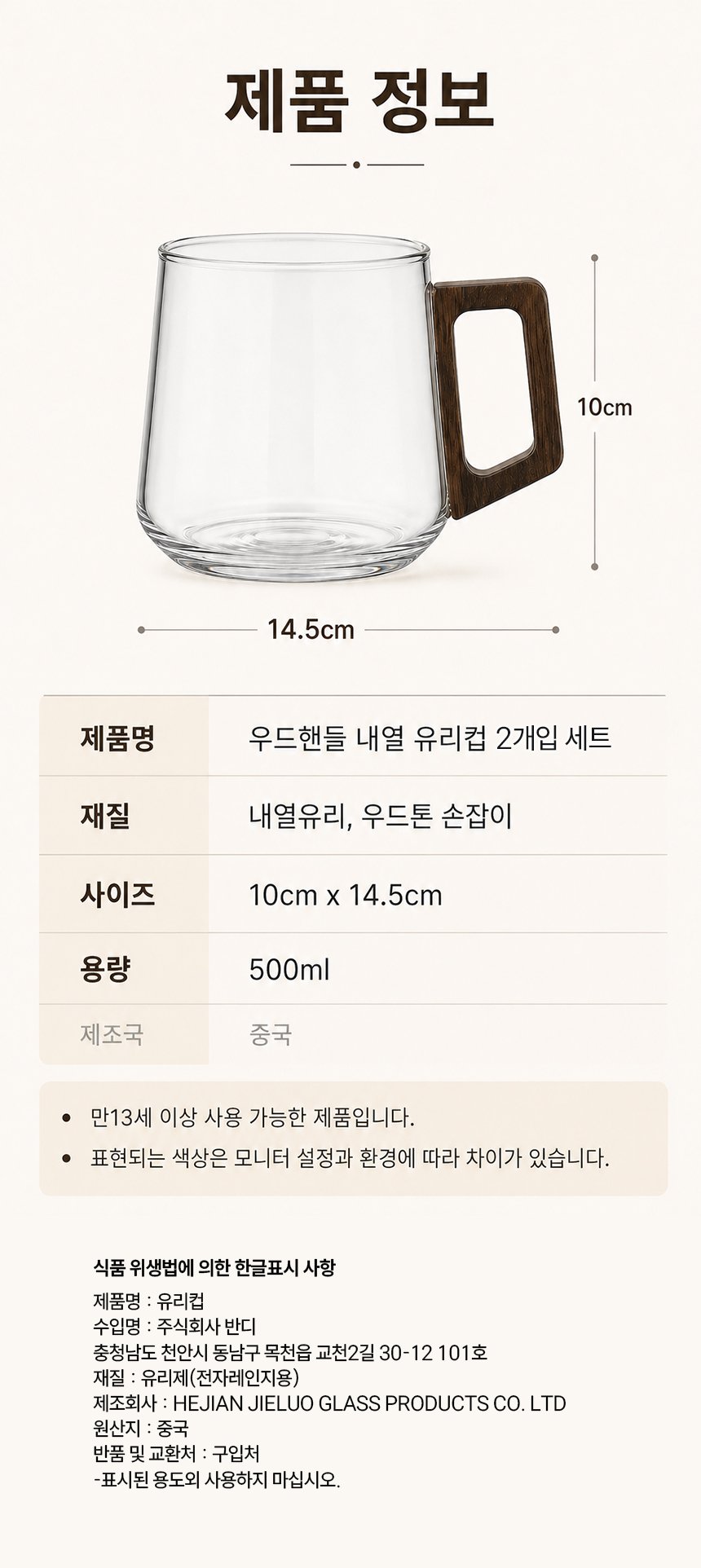 우드 핸들 예쁜 둥글 내열 유리컵 머그컵 2p 500ml