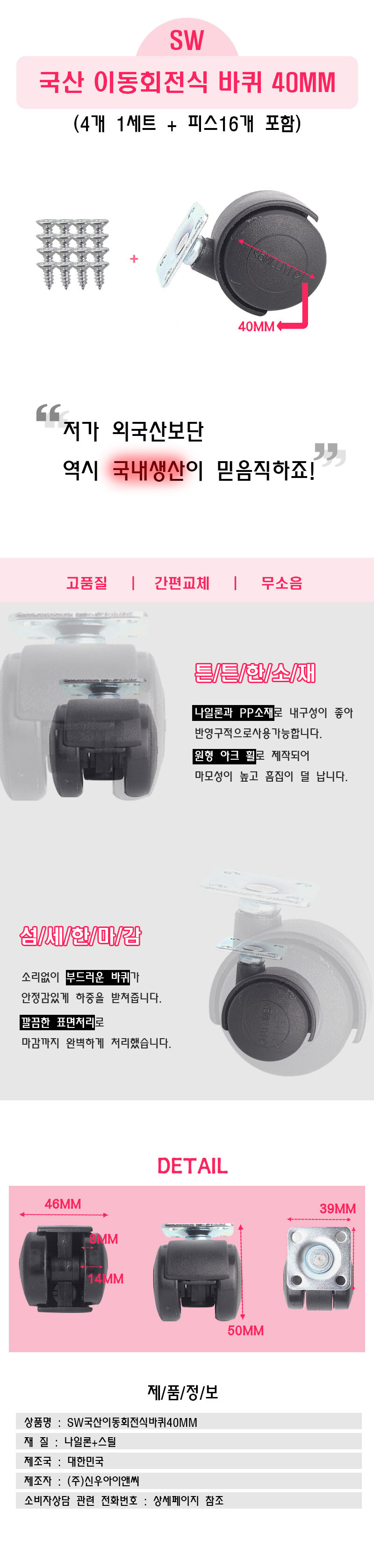 국산 가구 이동식 바퀴 선반 서랍 캐스터 미니 회전 바퀴 40mm 4개