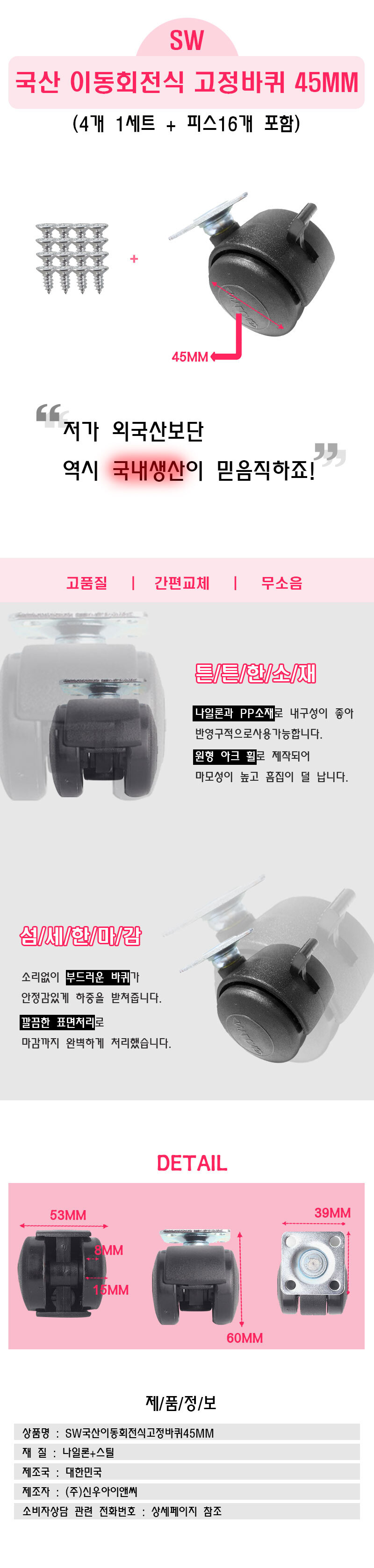 국산 가구 이동식 바퀴 선반 서랍 캐스터 미니 회전 고정 바퀴 45mm 4개