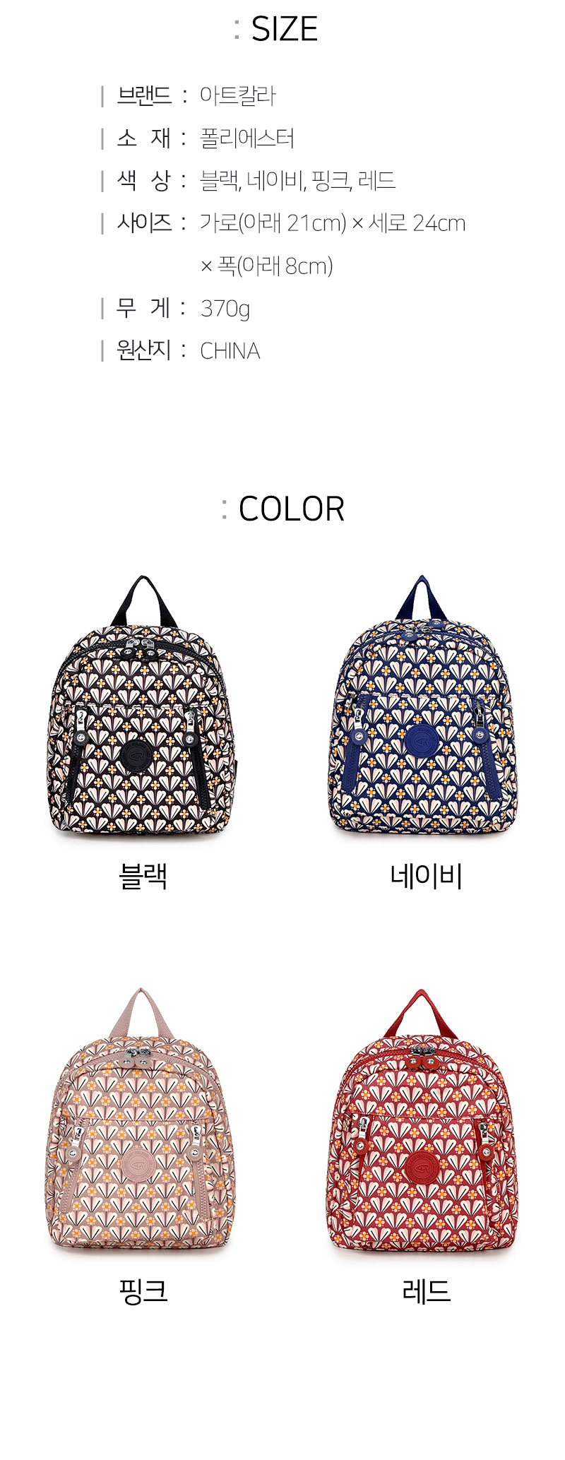소재 폴리에스터 색상 상세정보 별도표기