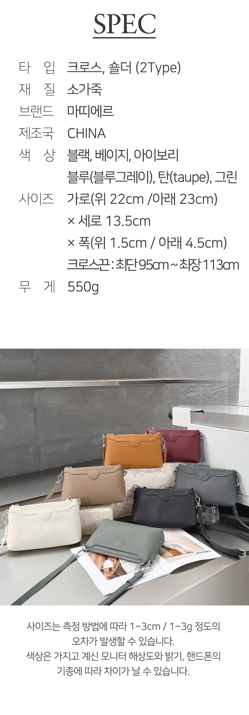 소재 소가죽 색상 상세정보 별도표기