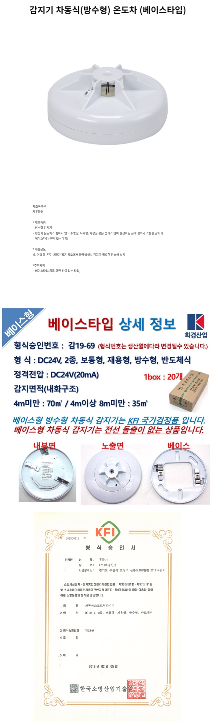 소방용품 감지기 차동식 방수형 온도차 베이스타입