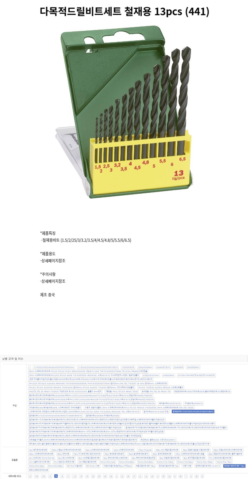 수공구 다목적 드릴 비트세트 철재용 13개 441