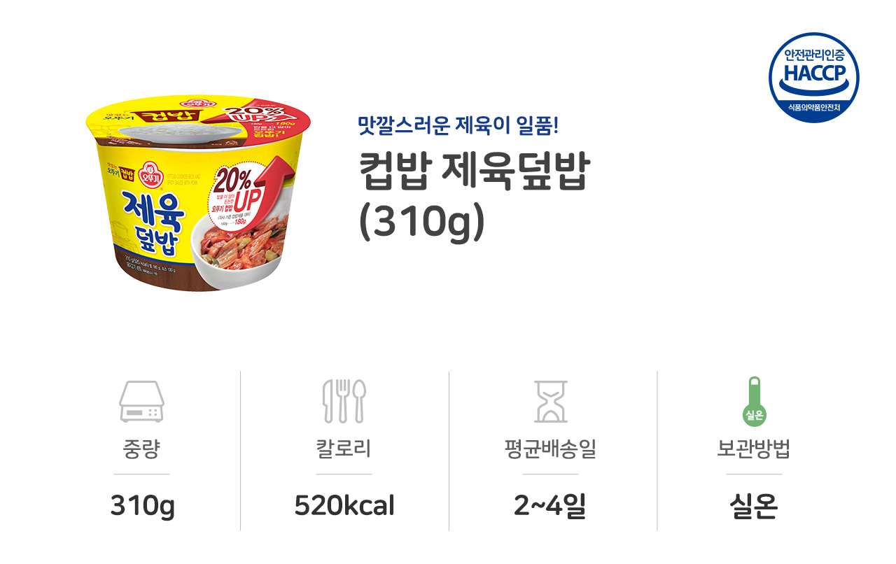 | 품명 및 모델명 | 즉석밥(컵밥) /제육덮밥 310g |