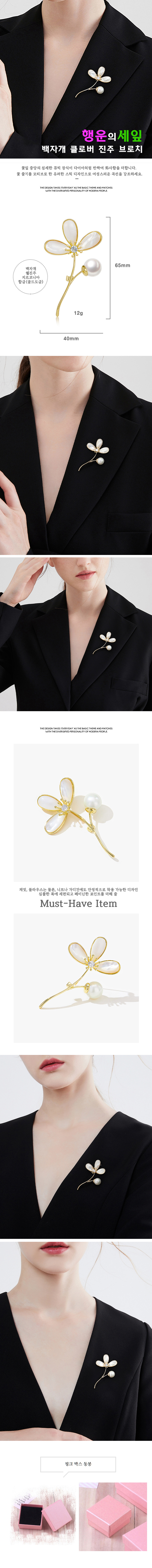 행운의 세잎 꽃잎 백자개 클로버 큐빅 진주 브로치