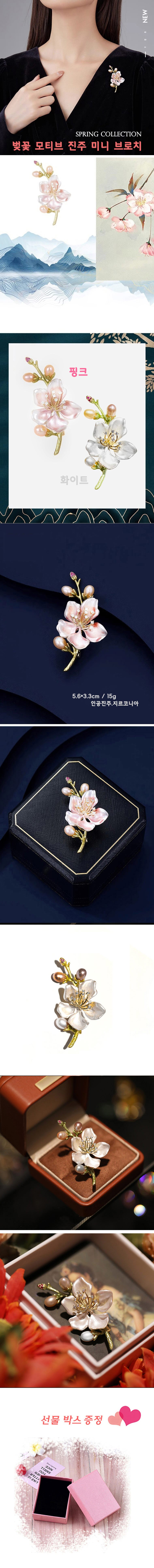 벚꽃 모티브 미니 진주 옷핀 새봄 브로치 지르코니아 핑크