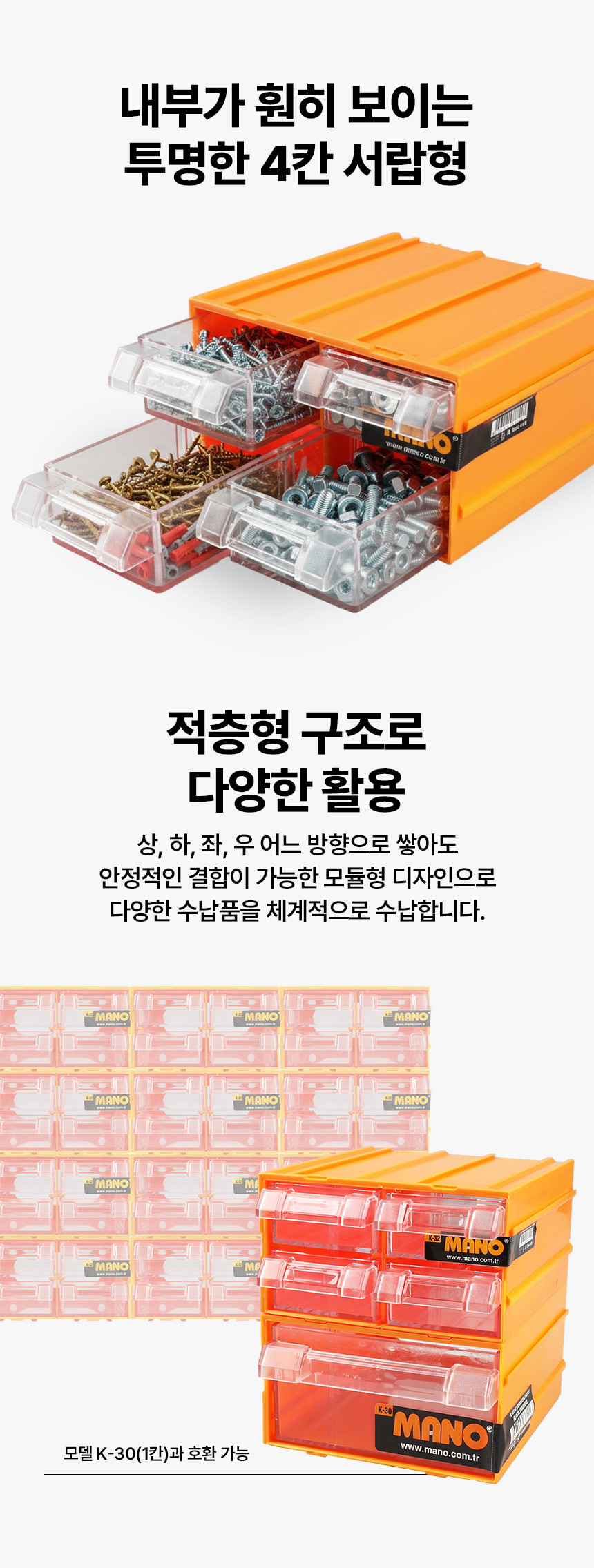 피스정리함 부품함 서랍형 120x110x62 모듈형 4칸 K-32