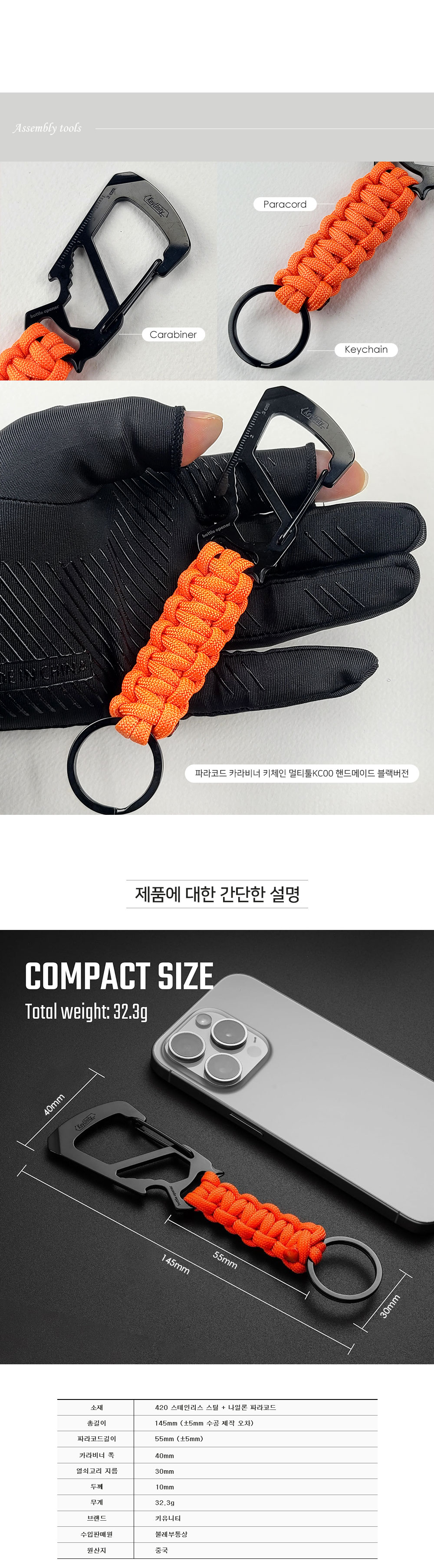 | 소재 | 420 스테인리스 스틸 + 나일론 파라코드 | 치수 | 145x40mm |