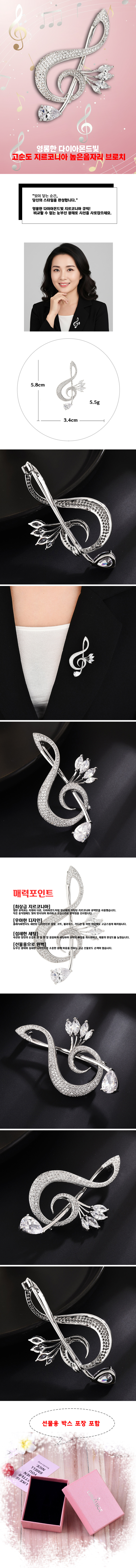 다이아몬드빛 고순도 지르코니아 높은음자리 옷핀 브로치