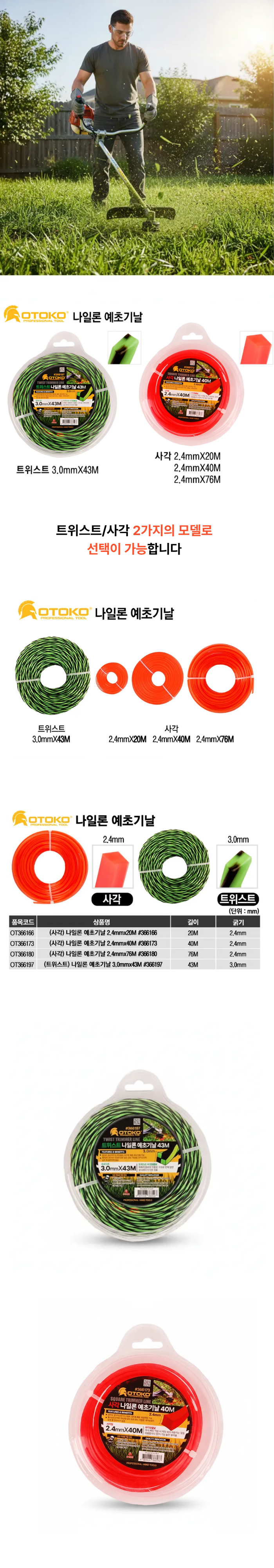 제품군 기타재화 품명 사각 나일론 예초기날 2.4mm x 76m