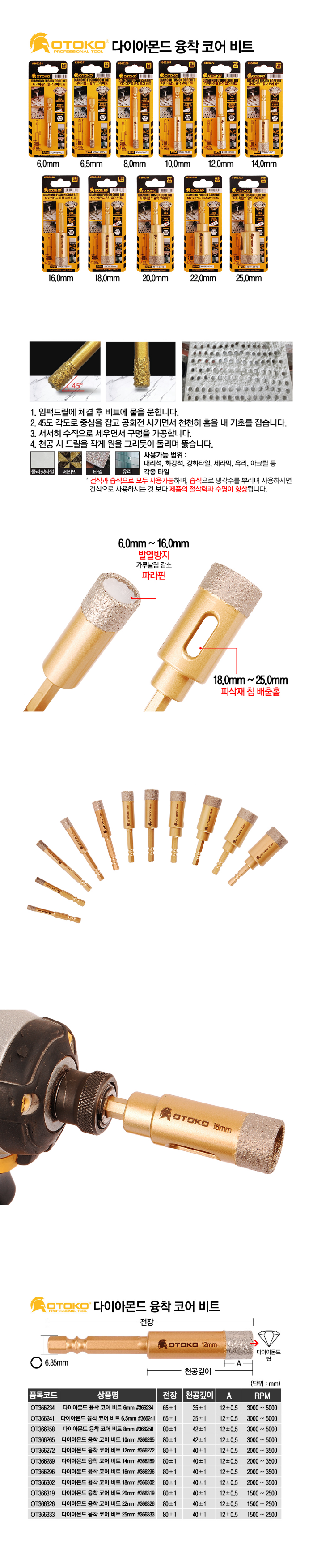제품군 기타재화 품명 대리석 유리 타일 천공 OTOKO 다이아몬드 융착 코어 비트 20mm