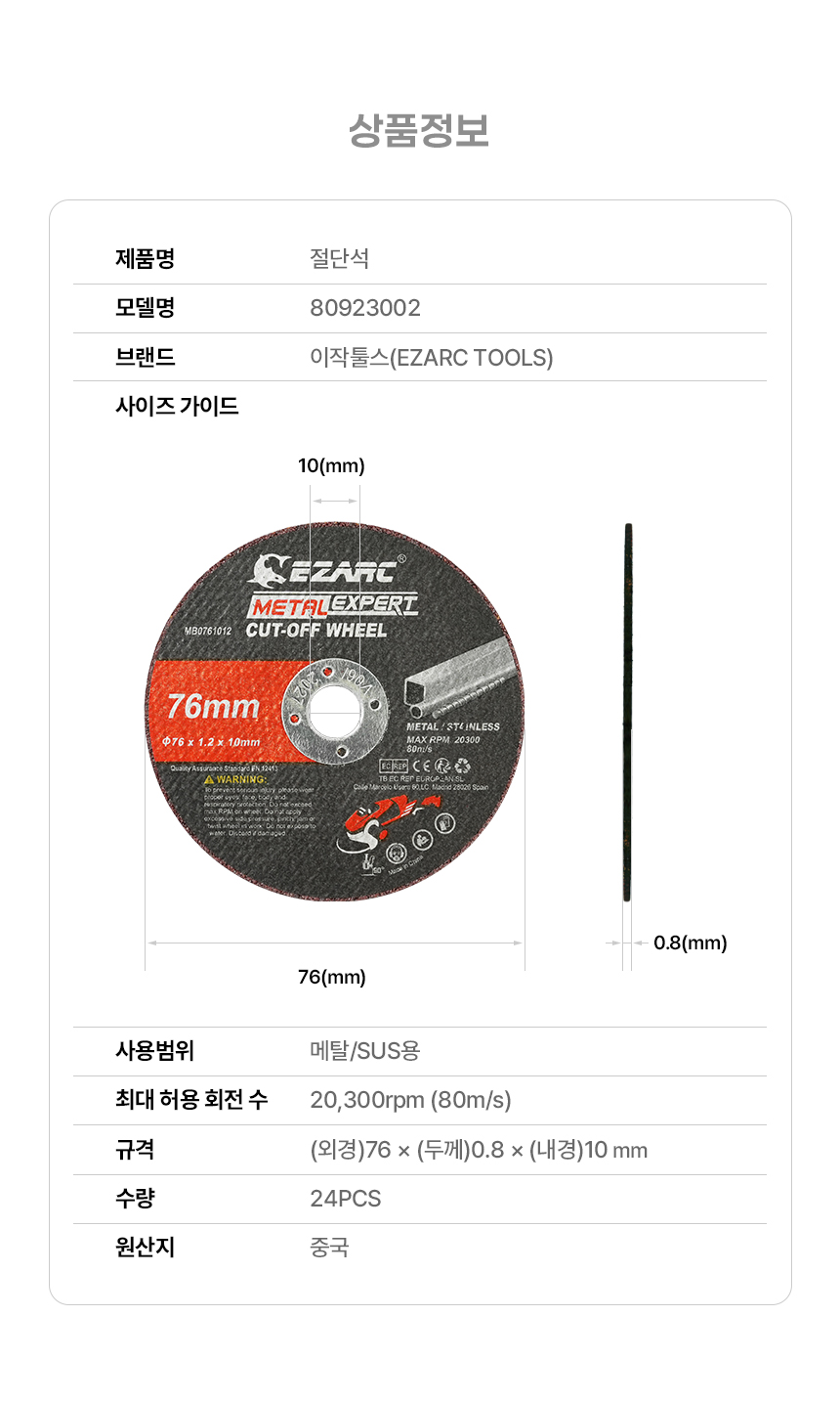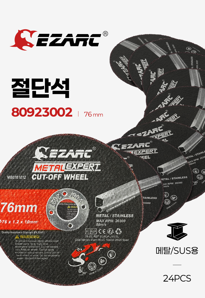 제품군 기타재화 품명 EZAC TOOLS 75mmx1.2x10 절단석 24PCS