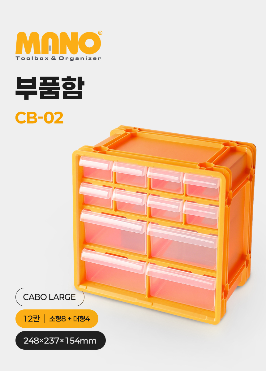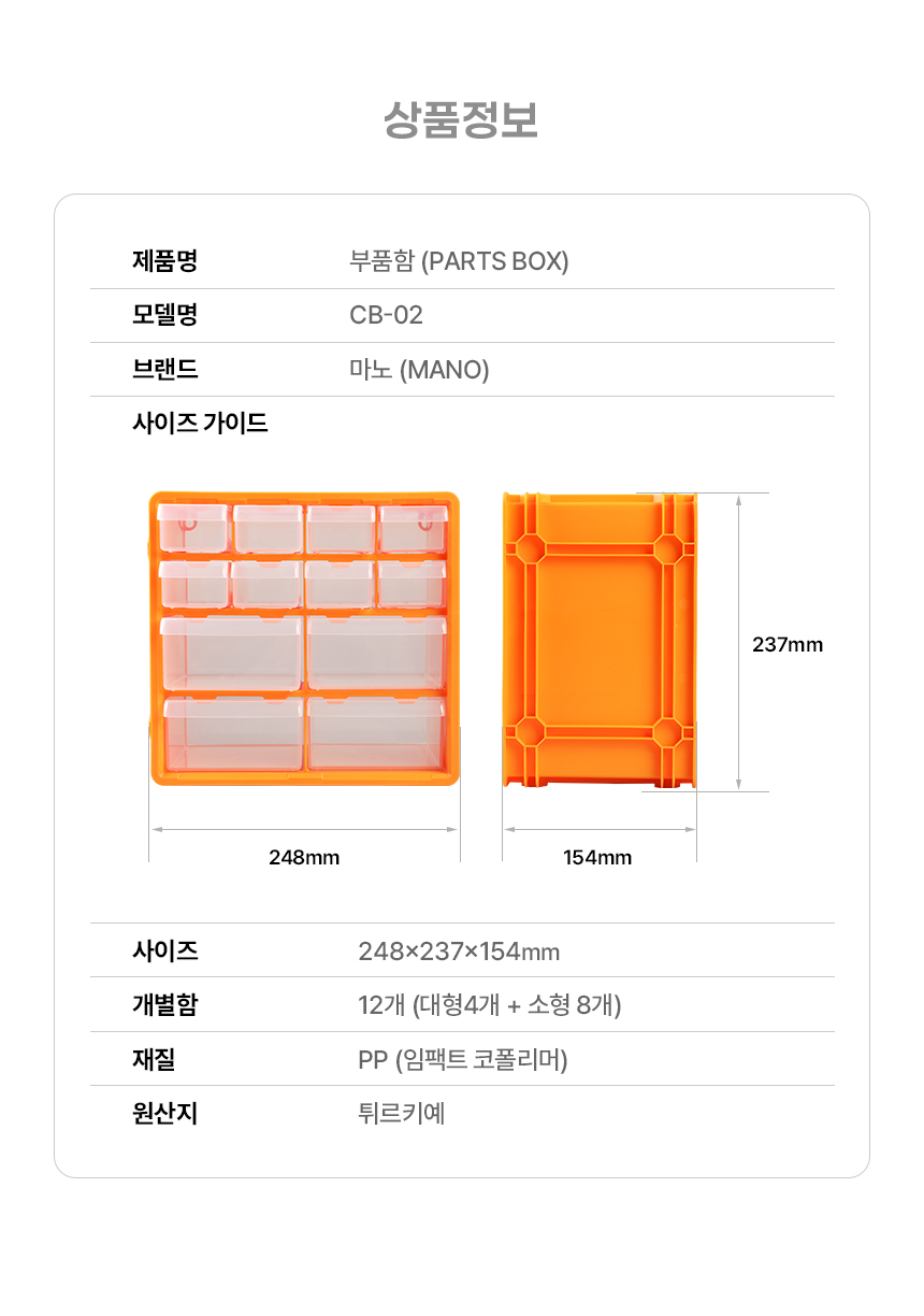 제품군 기타재화 품명 MANO 부품함 12PCS 248x237x154 CB-02