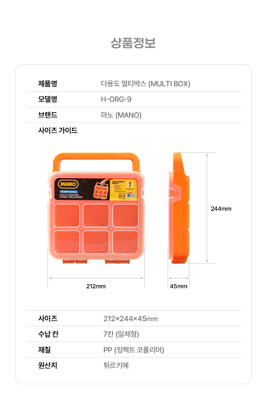 제품군 기타재화 품명 MANO 다용도멀티박스 H-ORG-9 244x212x45