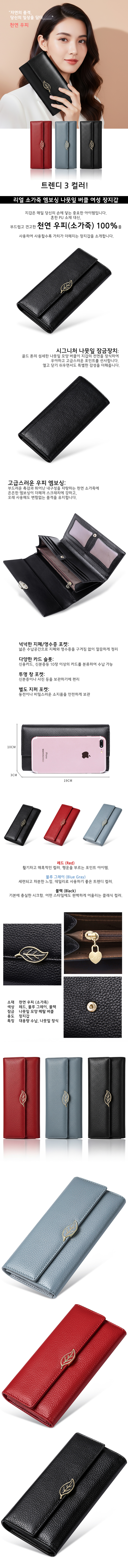 트렌디 3컬러 리얼 소가죽 엠보싱 나뭇잎 버클 장지갑