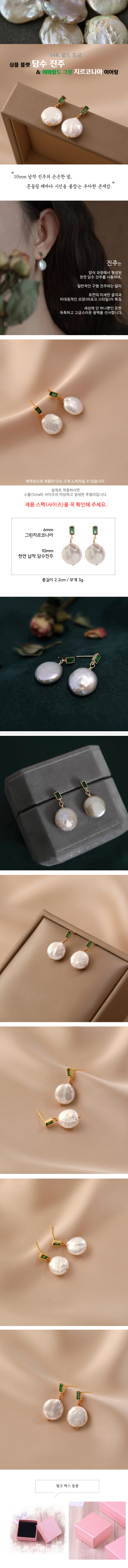 심플 플랫 담수진주 에메랄드 그린 지르코니아 귀걸이