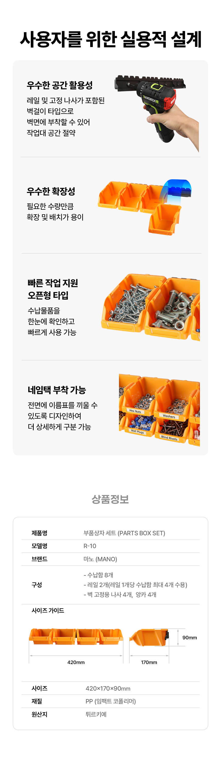 부속함 나사못 칸막이 결합형 420x170x90 8PCS 부품상자 세트 R-10