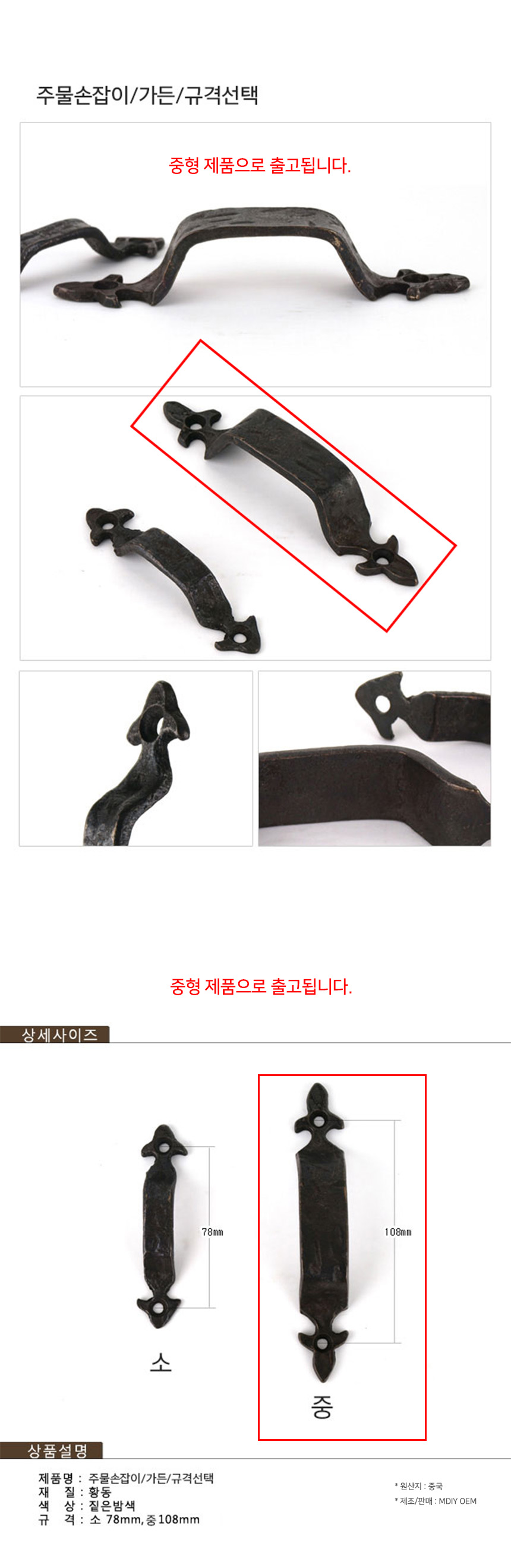 인테리어 주물손잡이 가든 황동 중형 나사간격 108mm