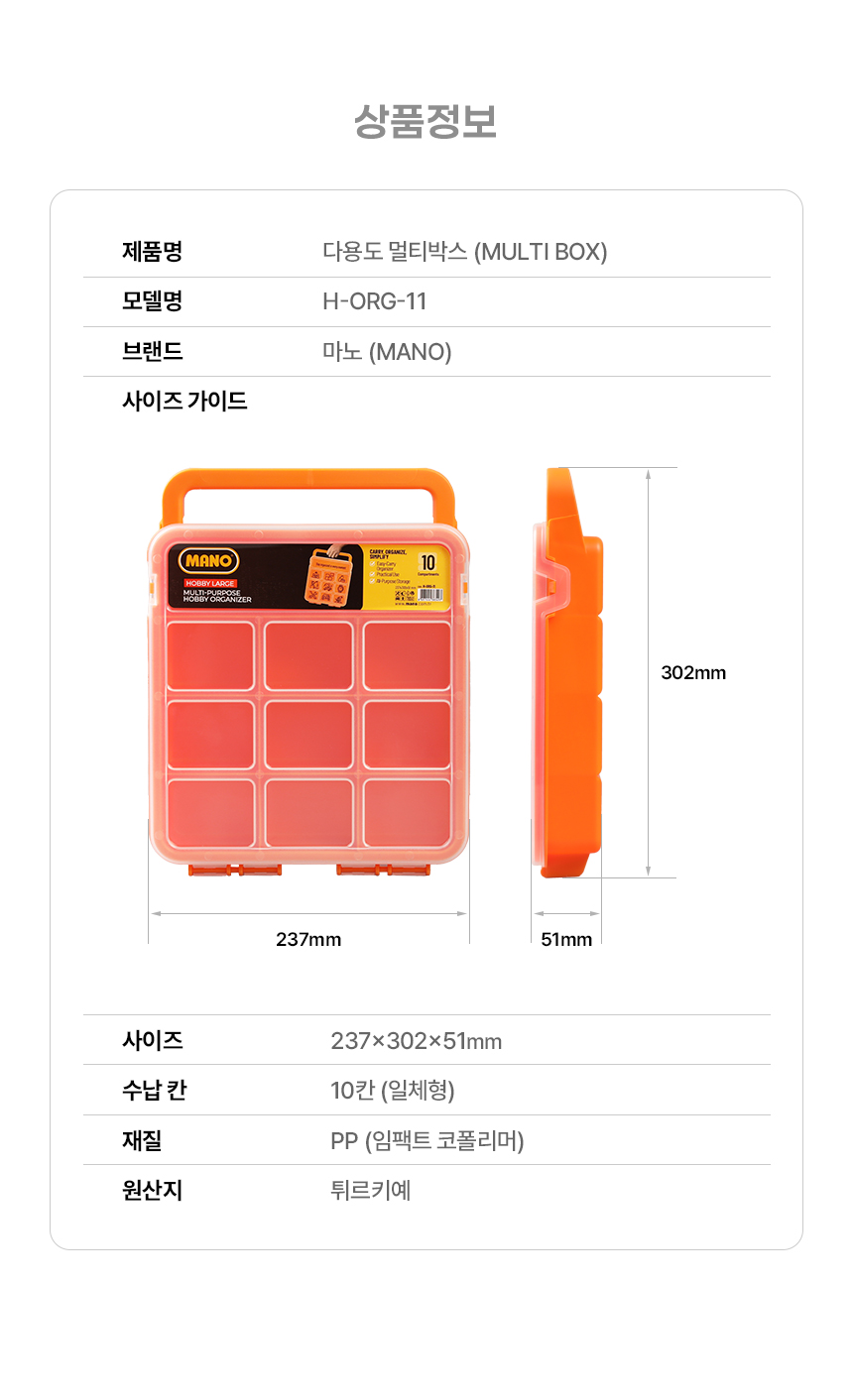 피스통 부속함 수납함 볼트 302x237x51 H-ORG-11 멀티박스