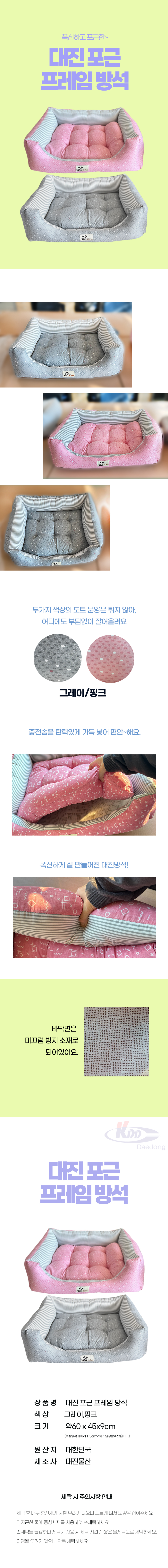 대진 포근 프레임 반려동물 방석 (그레이)