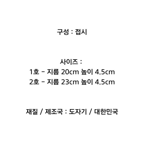 이천도자기 흰여울 원접시 1호 20cm 식기 그릇 플레이트 대접시