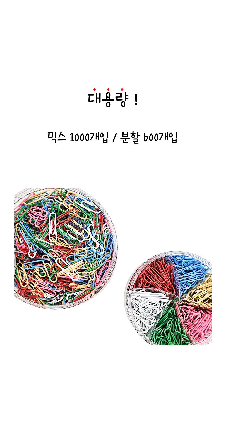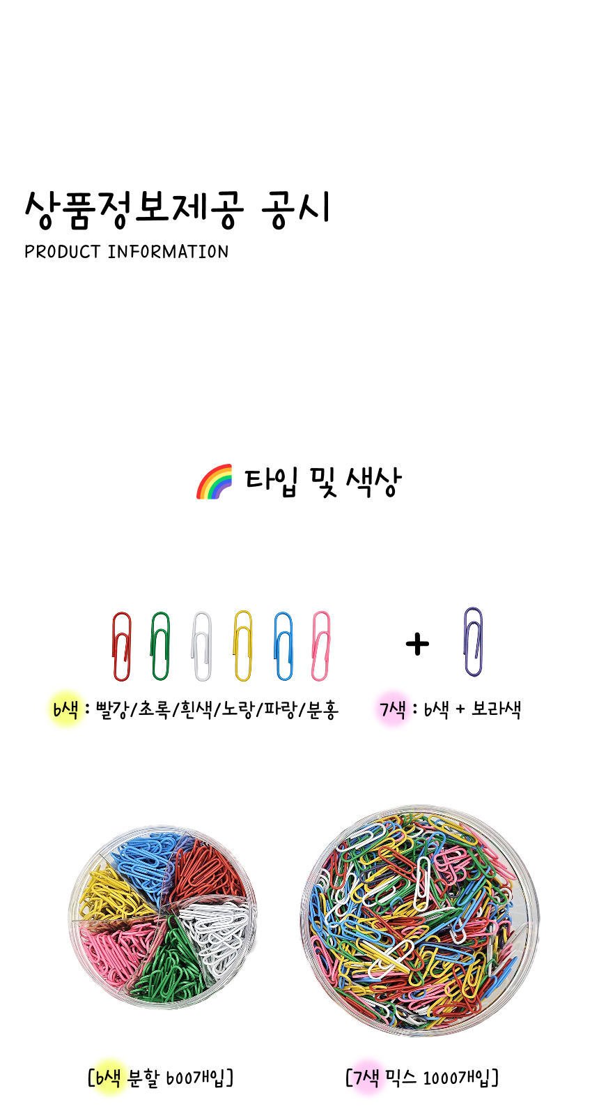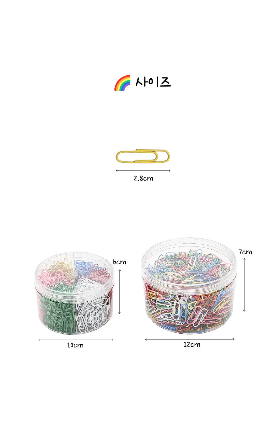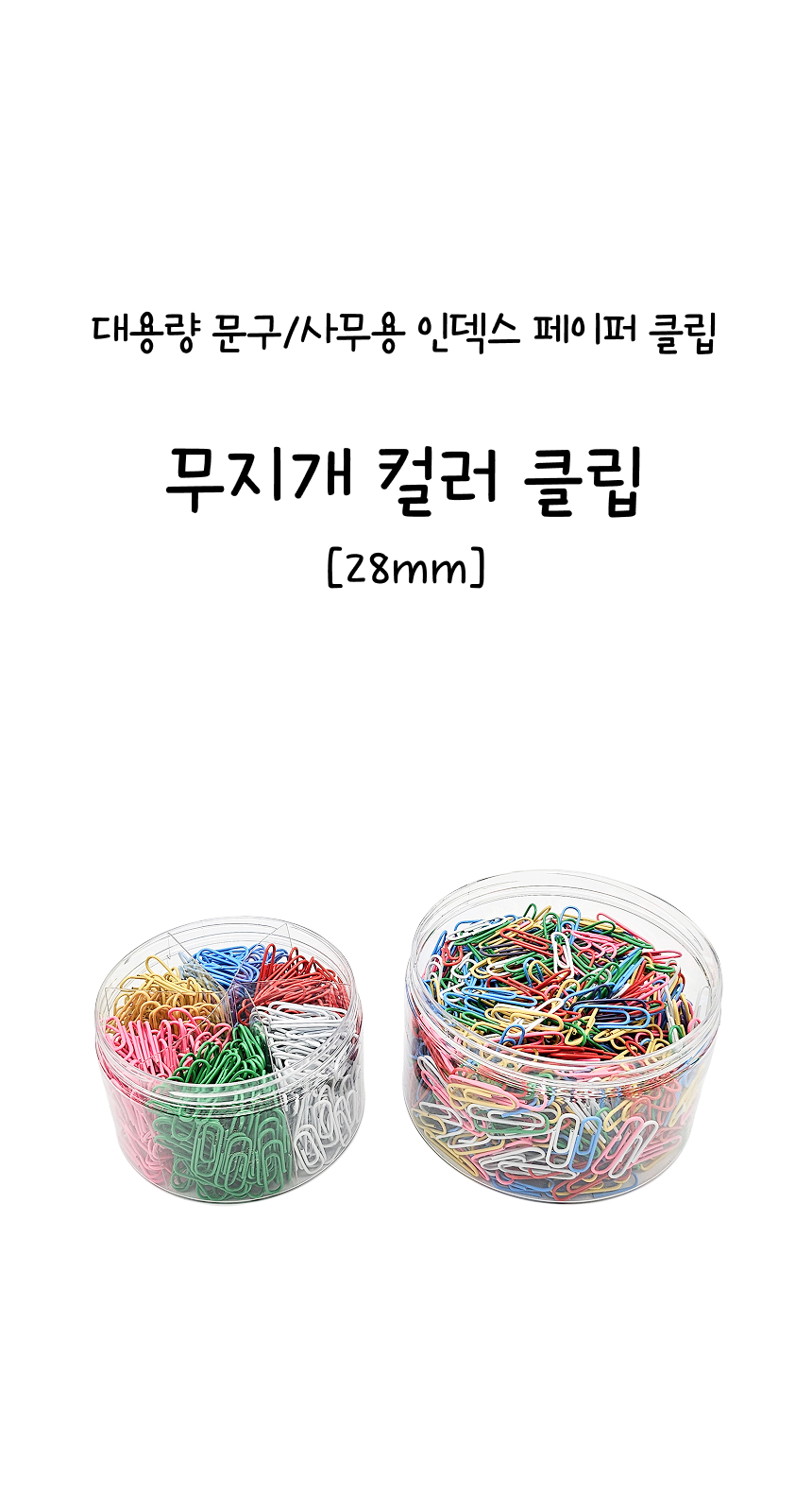대용량 알록달록 무지개 컬러 페이퍼 클립 28mm 600입/1000입