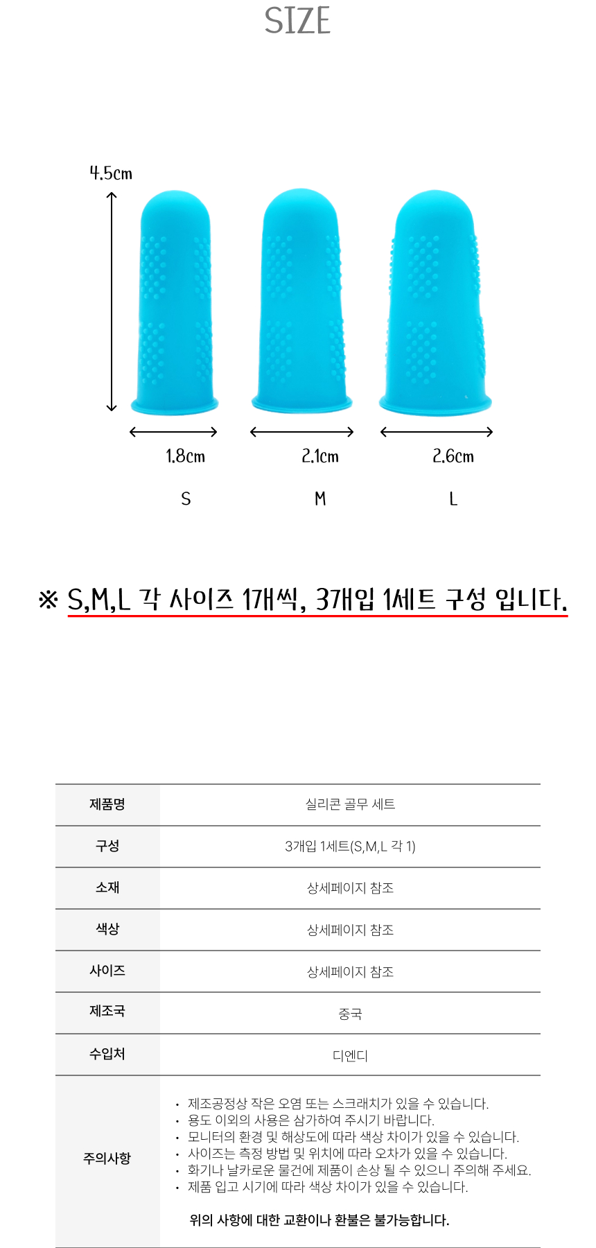 실리콘 논슬립 돌기 골무 엄지 검지 중지 세 손가락 1세트