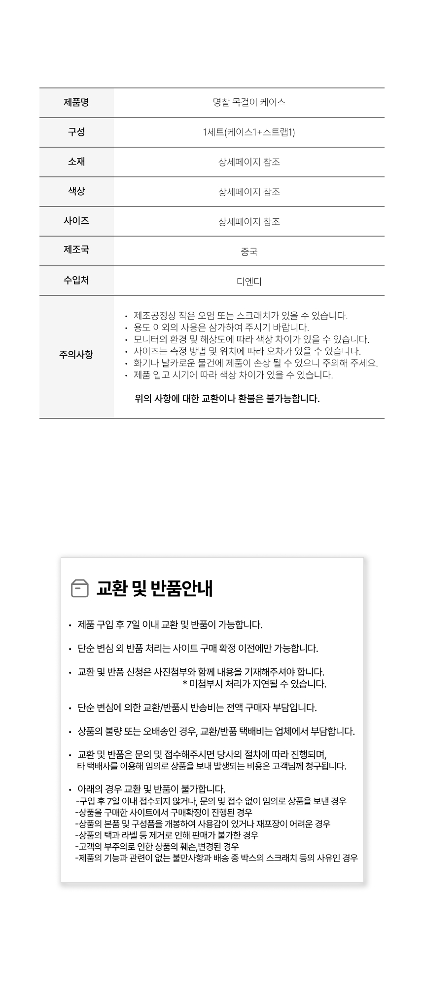 ※ 오배송, 불량, 파손 이외의 사유 및 색상 차이에 의한 반품/교환은 변심에 해당됩니다.