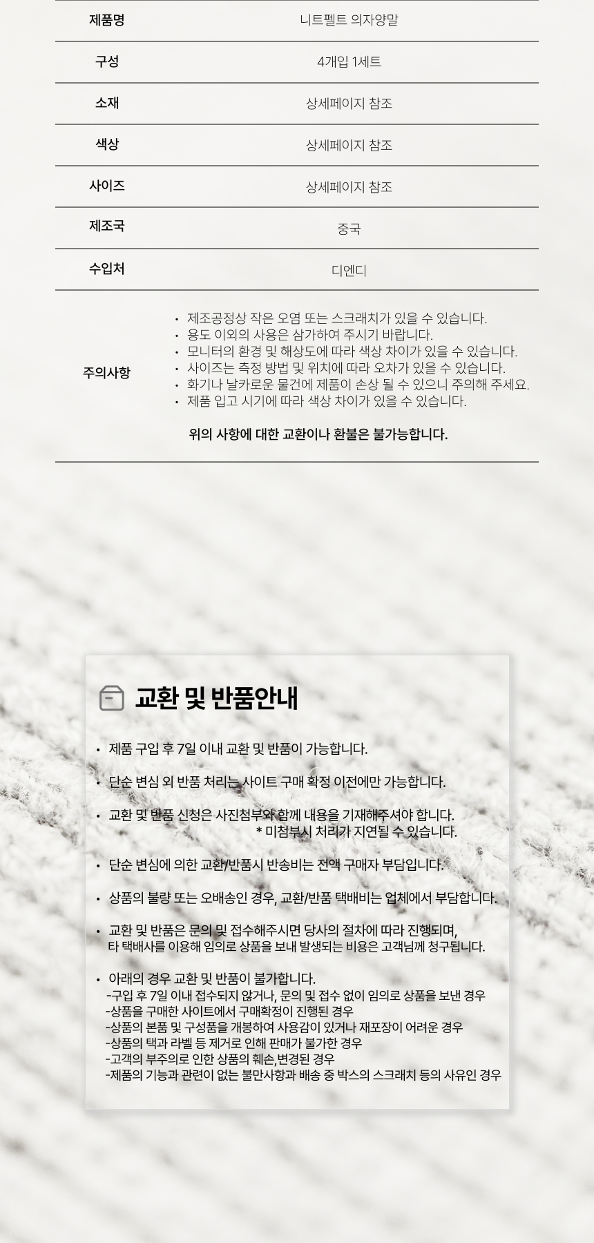 | 상품의 교환/반품/보증 조건 및 품질보증 기준 | |||