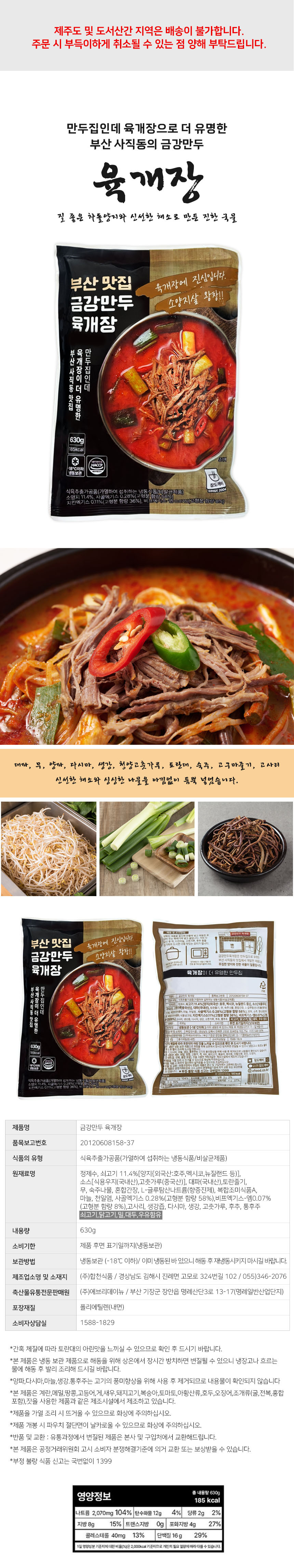 제품군 가공식품 제품명 제품명:금강만두 육개장
